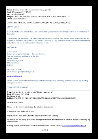 For any urgent matters which cannot wait until then, please contact Dionne.grant@enfield.gov.uk.