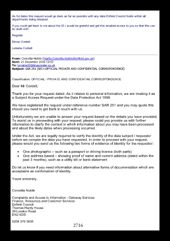 please would you send us the following two forms of evidence of identity for the requestor: