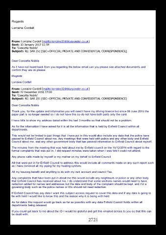 passed to Enfield Council about me. Any meetings that were held with police and any other body and Enfield