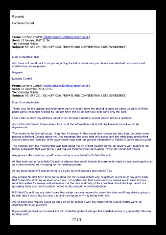 that Enfield Council has received about me, I do understand that some sections names would need to have