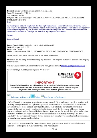 For any urgent matters which cannot wait until then, please contact Dionne.grant@enfield.gov.uk.