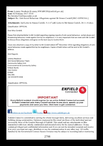 social behaviour made against him by his neighbours. Copies of both letters will be sent to Mr Cordell’s