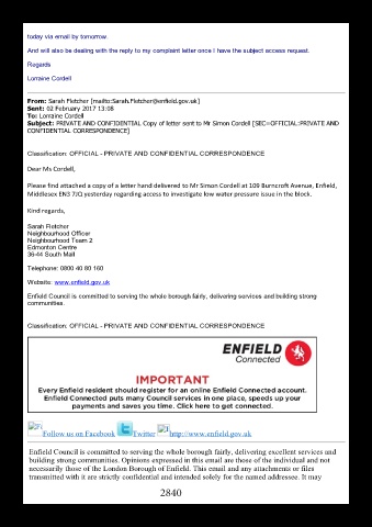 Middlesex EN3 7JQ yesterday regarding access to investigate low water pressure issue in the block.