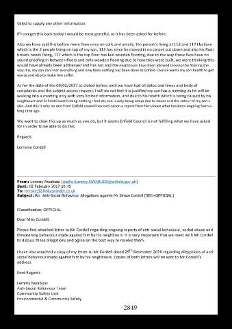 social behaviour made against him by his neighbours. Copies of both letters will be sent to Mr Cordell’s