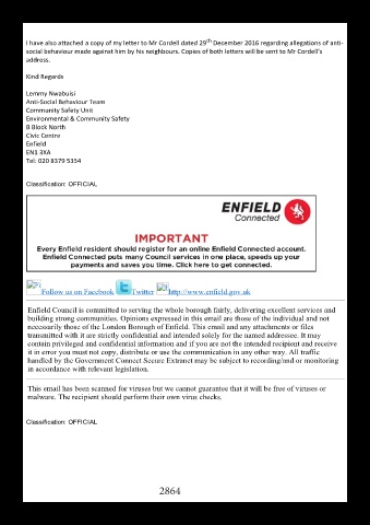 social behaviour made against him by his neighbours. Copies of both letters will be sent to Mr Cordell’s