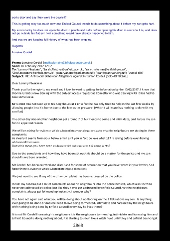 It is not Mr Cordell harassing his neighbours it is the neighbours tormenting, intimidate and harassing him and