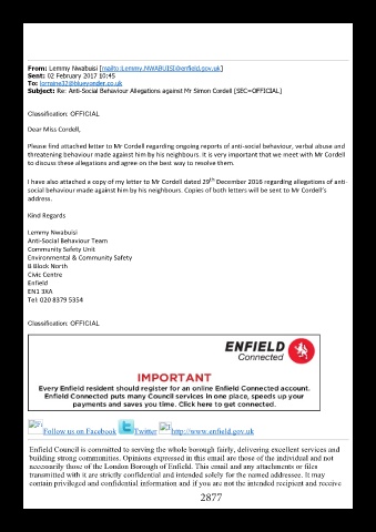 social behaviour made against him by his neighbours. Copies of both letters will be sent to Mr Cordell’s