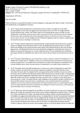 Subject: RE: AntiSocial Behaviour Allegations against Mr Simon Cordell [SEC=OFFICIAL]
