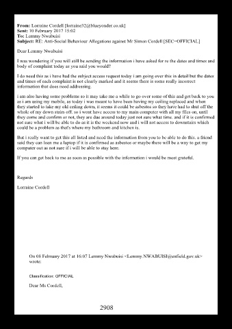 Subject: RE: AntiSocial Behaviour Allegations against Mr Simon Cordell [SEC=OFFICIAL]