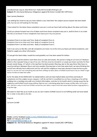 I have asked for the dates these complaints was put in and yet have had nothing about the dates and times.