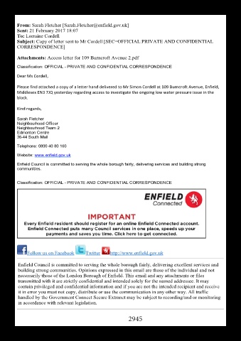 Please find attached a copy of a letter hand delivered to Mr Simon Cordell at 109 Burncroft Avenue, Enfield,
