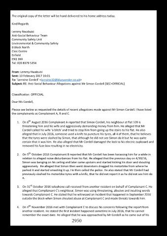 Subject: RE: Anti‐Social Behaviour Allegations against Mr Simon Cordell [SEC=OFFICIAL]