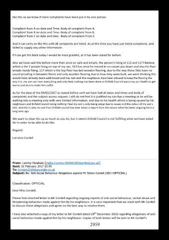 social behaviour made against him by his neighbours. Copies of both letters will be sent to Mr Cordell’s