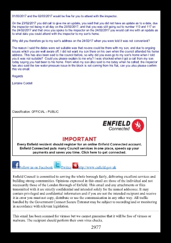 the 24/02/2017 and that once you spoke to the inspector on the 24/02/2017 you would call me with an update as