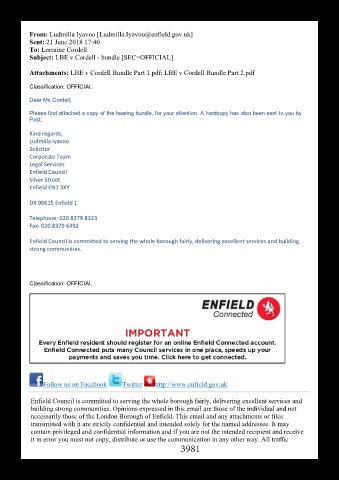 Please find attached a copy of the hearing bundle, for your attention. A hardcopy has also been sent to you by