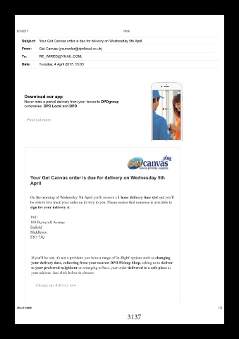 Subject: Your Get Canvas order is due for delivery on Wednesday 5th April
