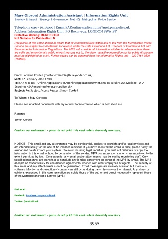 Telephone 0207 161 3500 | Email SARonlineapplications@met.pnn.police.uk