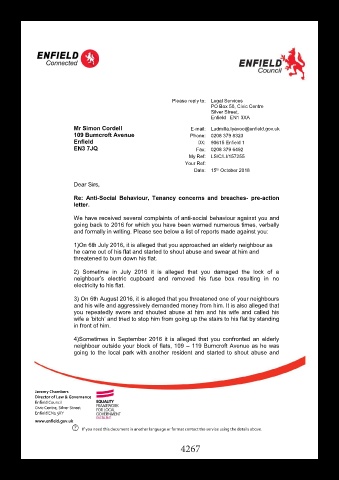 Re: Anti-Social Behaviour, Tenancy concerns and breaches- pre-action