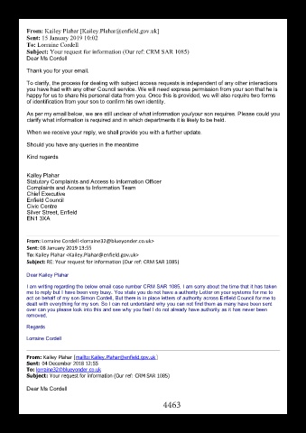 act on behalf of my son Simon Cordell, But there is in place letters of authority across Enfield Council for me to