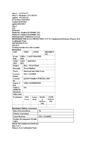REMEMBER THE DATA PROTECTION ACT No Unauthorised Disclosure Dispose of as