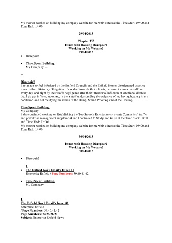 My mother worked on building my company website for me with others at the Time Start: 09:00 and