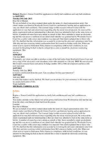 Subject: Regina v. Simon Cordell for application to clarify bail conditions and vary bail conditions