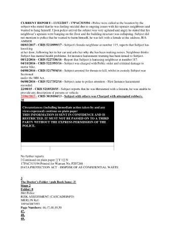 08/03/2017 - CRIS 5210999/17 - Subject's female neighbour at number 115, reports that Subject has