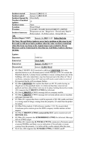 • 02:12hrs C DUFFY (E15) received a call from S BONNER (E4) who