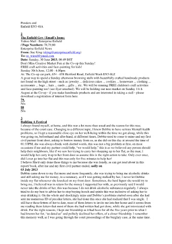 Debbie came down to my flat more and more frequently, she was trying to bring me alcoholic drinks
