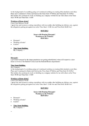 I spent time and resources costing expenditure with my mother also building my defence case, against