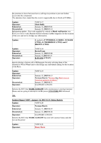 Incident Report 74507 - January 14, 2013 11:15- Debra Redwin