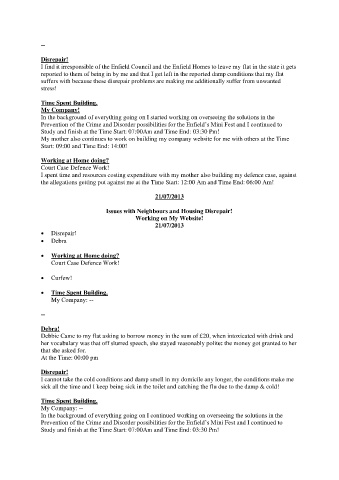 I spent time and resources costing expenditure with my mother also building my defence case, against