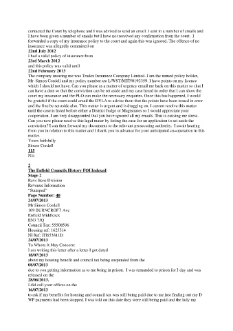 forwarded a copy of my insurance policy to the court and again this was ignored. The offence of no