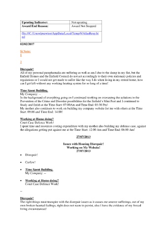 I spent time and resources costing expenditure with my mother also building my defence case, against