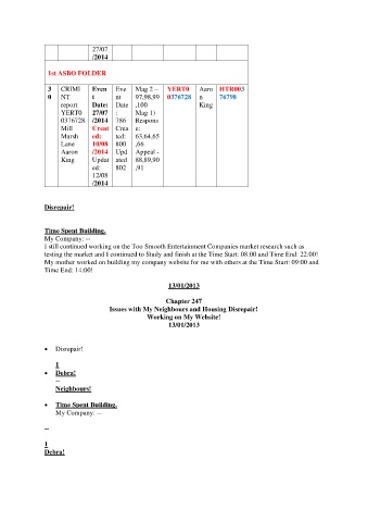My mother worked on building my company website for me with others at the Time Start: 09:00 and