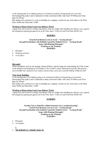 I spent time and resources costing expenditure with my mother also building my defence case, against