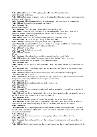 Police officer: Hi there it is PC Geoghegan from the Metropolitan Police, hum I have got; a