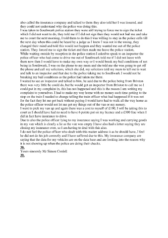and talk to an inspector and that due to the police taking me to Southwark I would not be