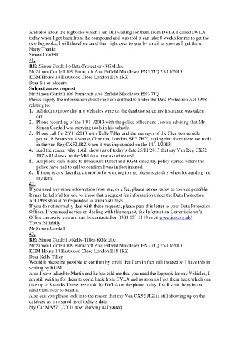 3. Phone call for 26/11/2013 with Kelly Tiller and the manager of the Charlton vehicle