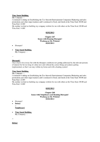 My mother worked on building my company website for me with others at the Time Start: 09:00 and