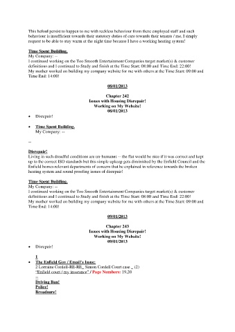 behaviour is insufficient towards their statutory duties of care towards their tenants / me, I simply