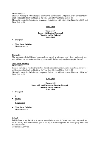 My mother worked on building my company website for me with others at the Time Start: 09:00 and