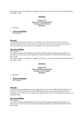 My mother worked on building my company website for me with others at the Time Start: 09:00 and