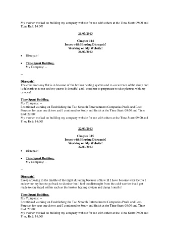 My mother worked on building my company website for me with others at the Time Start: 09:00 and