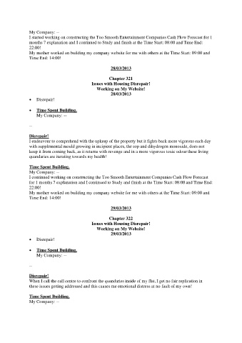 My mother worked on building my company website for me with others at the Time Start: 09:00 and