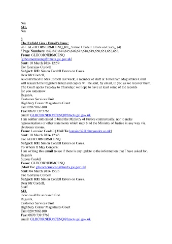 As confirmed to Mrs Cordell last week, a member of staff at Tottenham Magistrates Court