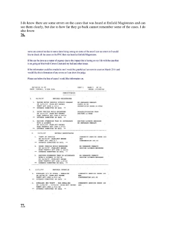 I do know there are some errors on the cases that was heard at Enfield Magistrates and can see them clearly, but due to how far they go back cannot remember some of the cases. I do also know 76, 77,