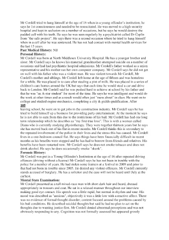 thoughts due to wanting justice first. Mr Cordell denied abnormal perceptions and was not