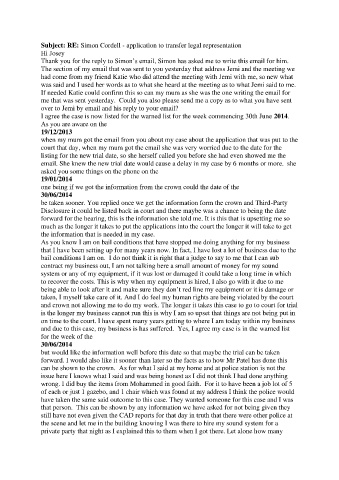 Subject: RE: Simon Cordell - application to transfer legal representation