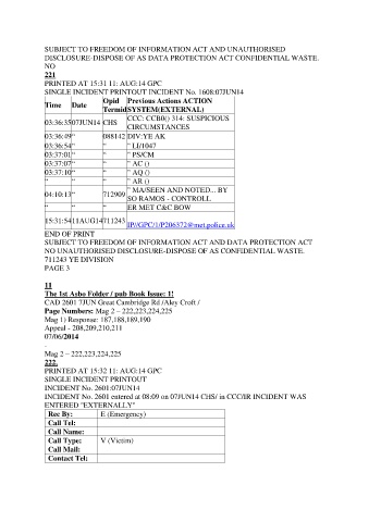 SINGLE INCIDENT PRINTOUT INCIDENT No. 1608:07JUN14